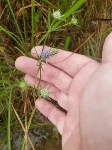 Blueflower Eryngo (Eryngium Integrifolium) is a perennial herb in the Apiaceae family with moderate care difficulty. It requires moderate watering and full sun or partial shade light in USDA hardiness zones 6-9. This plant is safe for cats and dogs.