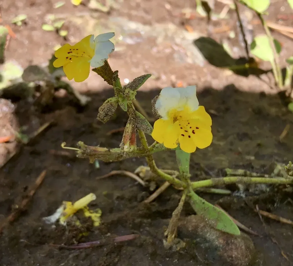 Erythranthe bicolor is a small, annual wildflower native and endemic to California, notable for its yellow and white flowers.