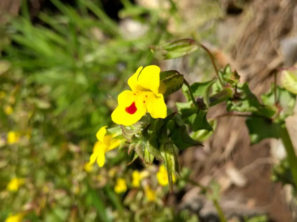 Shy Monkeyflower (Erythranthe Nasuta) is a annual to perennial herb in the Phrymaceae family with easy care difficulty. It requires moderate watering and full sun or partial shade light in USDA hardiness zones 7-10. This plant is safe for cats and dogs.