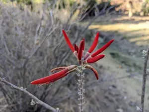 Erythrina flabelliformis is a deciduous small tree or shrub native to the southwestern United States and northern Mexico, known for its striking red flowers and leafless appearance for much of the year.