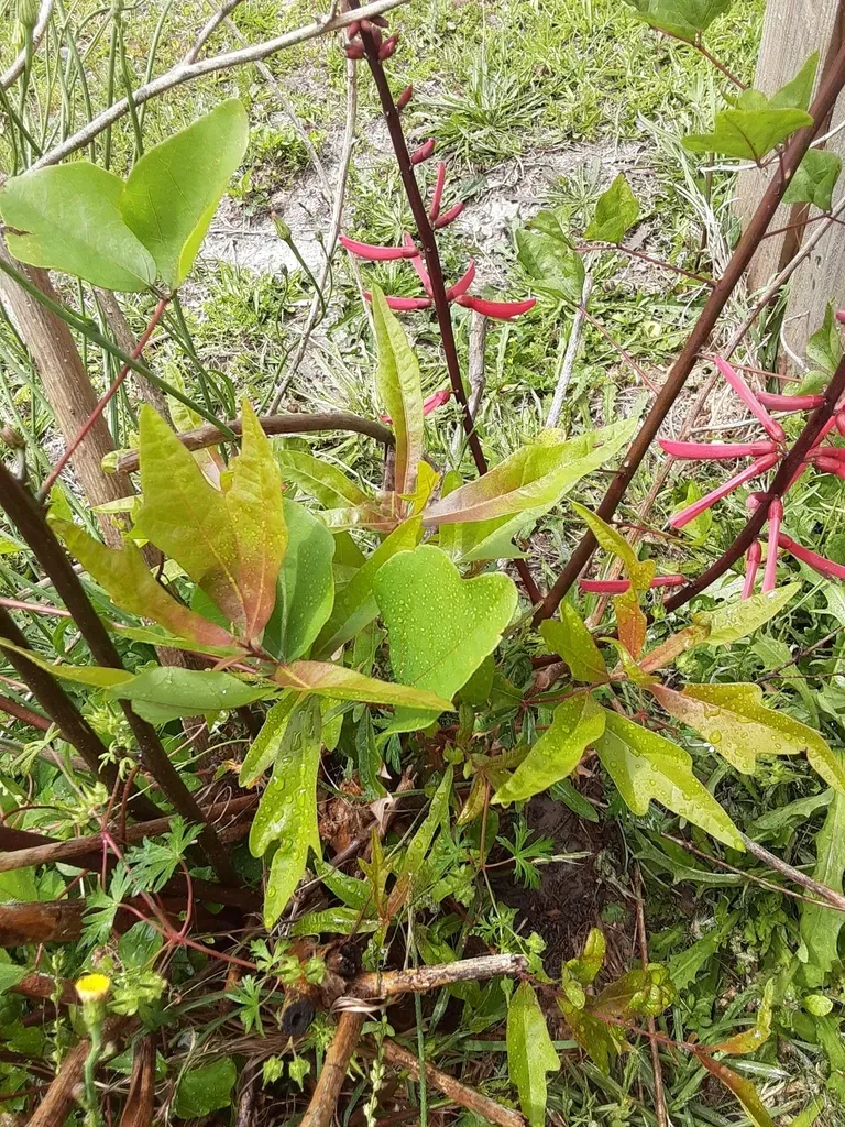 Coralbean (Erythrina Herbacea) is a perennial shrub in the Fabaceae family with easy care difficulty. It requires low watering and full sun or partial shade light in USDA hardiness zones 7-10. This plant is toxic to cats and dogs — keep it out of reach of pets.
