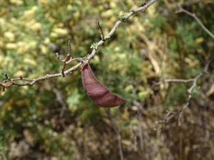 A drought-deciduous shrub or small tree with yellow flowers marked by red near the center, native to desert regions.
