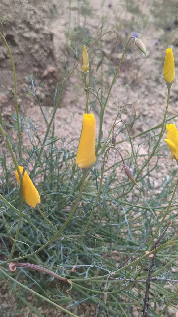A desert annual poppy native to southern California, notable for its conic receptacle and yellow flowers.
