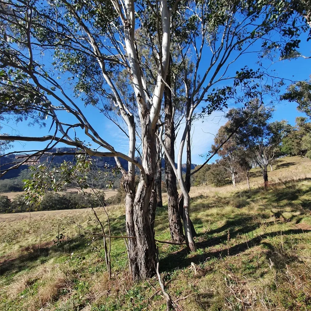 A small to medium-sized eucalyptus tree native to eastern Australia, known for its smooth, patchy bark and dull green to grey-green leaves.