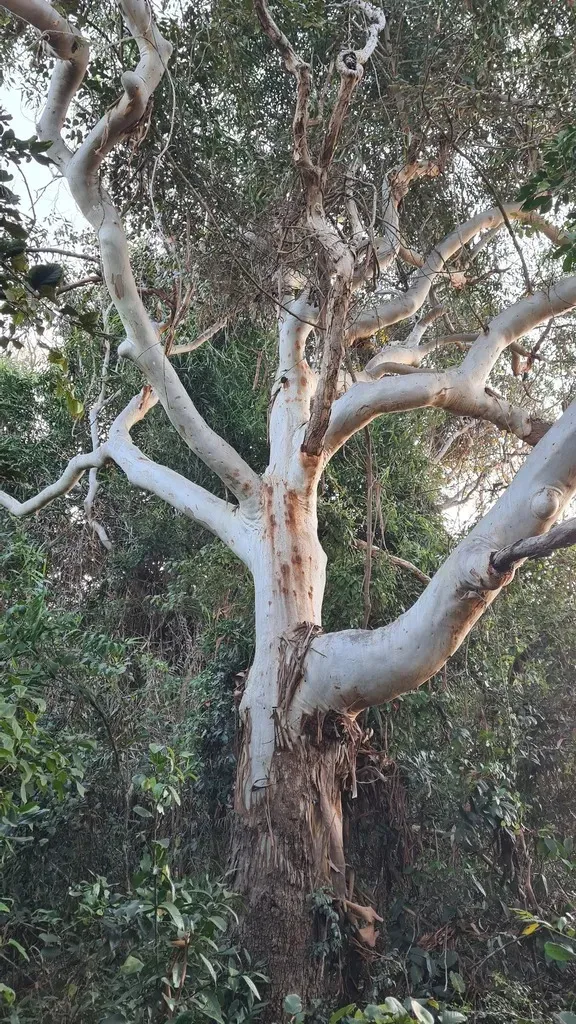 Eucalyptus grandis is a tall evergreen tree known for its smooth bark and rapid growth.