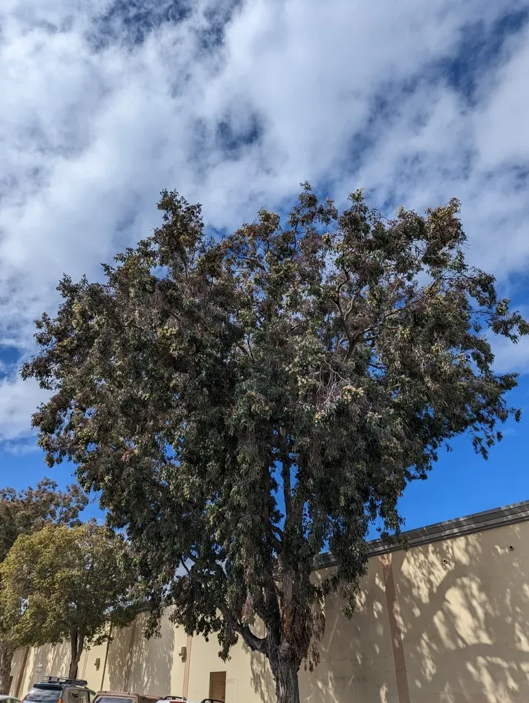 Red Box (Eucalyptus Polyanthemos) is a perennial tree in the Myrtaceae family with easy care difficulty. It requires moderate watering and full sun light in USDA hardiness zones 8-11. This plant is safe for cats and dogs.