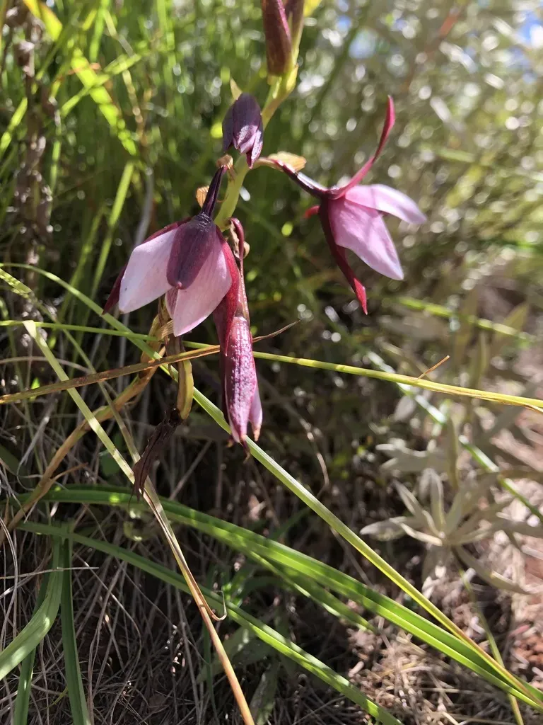 Eulophia hians is a rhizomatous geophyte orchid found in grasslands from the Eastern Cape to tropical Africa, characterized by stout woody rhizomes and variable flower colors.