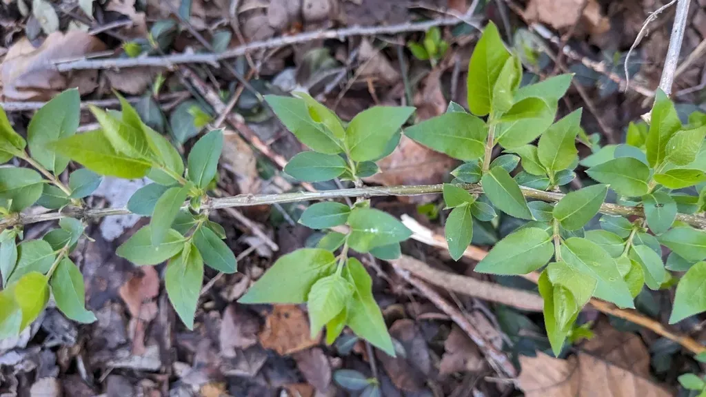 Euonymus alatus is a deciduous shrub known for its spectacular red fall foliage and distinctive corky 'wings' along its stems.