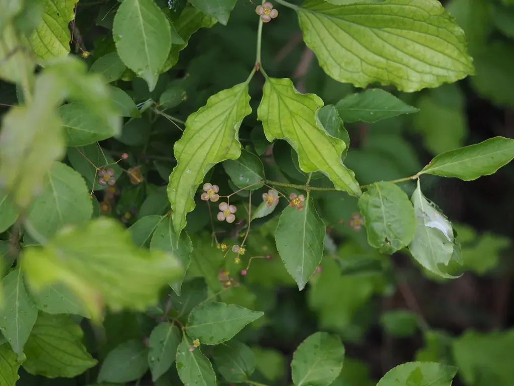 Warty Spindle (Euonymus Verrucosus) is a perennial shrub in the Celastraceae family with easy care difficulty. It requires moderate watering and full sun or partial shade light in USDA hardiness zones 4-8. This plant is toxic to cats and dogs — keep it out of reach of pets.