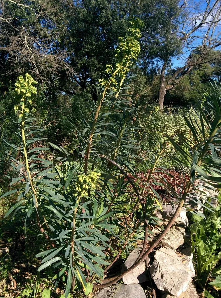 Euphorbia characias is an evergreen perennial shrub native to the Mediterranean region, known for its striking architectural form and chartreuse flower bracts.