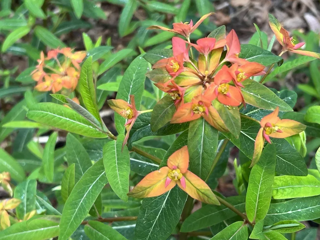 Fireglow Spurge (Euphorbia Griffithii) is a plant in the Euphorbiaceae family with moderate care difficulty. It requires moderate watering and moderate light.