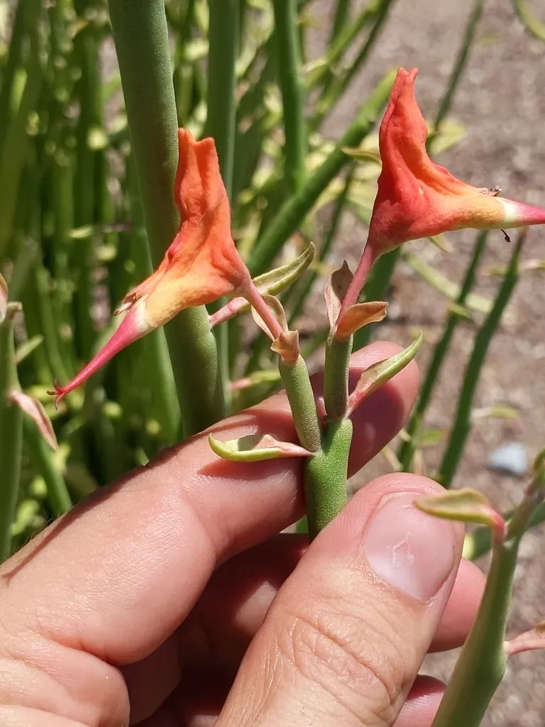 Slipper Plant (Euphorbia Lomelii) is a perennial succulent shrub in the Euphorbiaceae family with moderate care difficulty. It requires low watering and full sun light in USDA hardiness zones 9-11. This plant is toxic to cats and dogs — keep it out of reach of pets. It can be grown indoors.