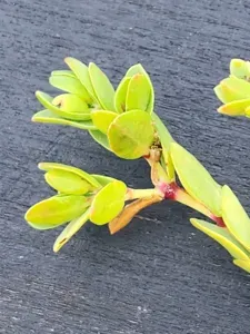 Seaside Spurge (Euphorbia Mesembryanthemifolia) is a perennial succulent in the Euphorbiaceae family with easy care difficulty. It requires low watering and full sun or partial shade light in USDA hardiness zones 9-11. This plant is toxic to cats and dogs — keep it out of reach of pets.