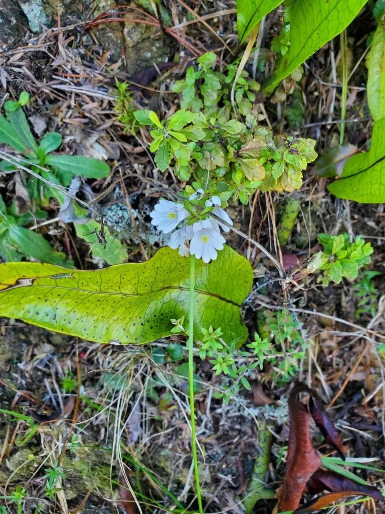 Euphrasia cuneata is a perennial herb or subshrub native to New Zealand, growing up to 60 cm tall with woody stems in the lower parts.