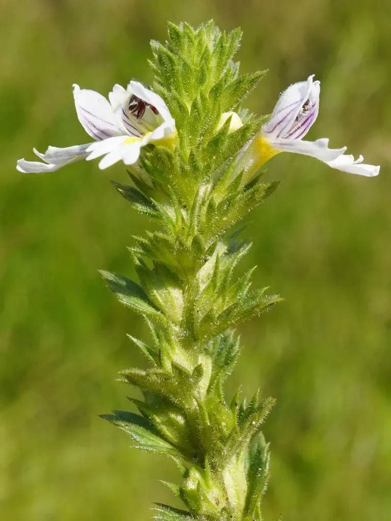 Eyebright (Euphrasia Officinalis) is a annual herb in the Orobanchaceae family with moderate care difficulty. It requires moderate watering and full sun or partial shade light in USDA hardiness zones 4-8. This plant is safe for cats and dogs.