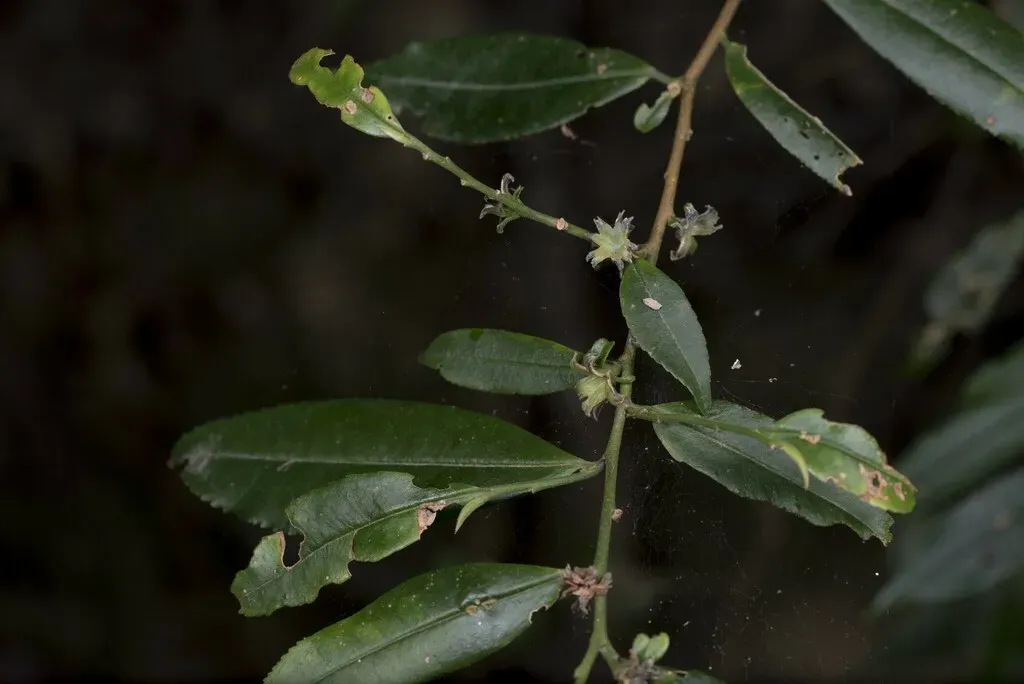 Eurya loquaiana is an evergreen shrub or small tree native to southern China, Taiwan, and Hainan, known for its glossy leaves and fragrant, small, bell-shaped flowers.