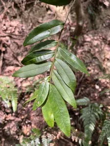 Eurya strigillosa is a hardy shrub or small tree native to temperate forests, characterized by oblong, toothed leaves with a subtly rough texture.