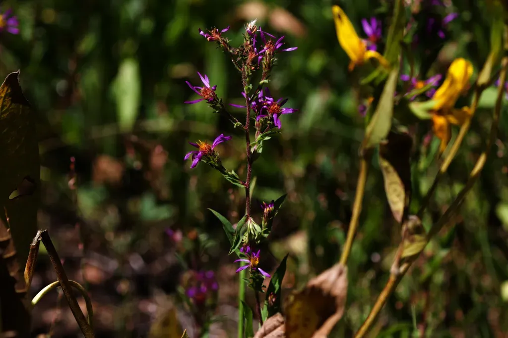 Thickstem Aster (Eurybia Integrifolia) is a perennial herb in the Asteraceae family with easy care difficulty. It requires moderate watering and full sun or partial shade light in USDA hardiness zones 4-8. This plant is safe for cats and dogs.