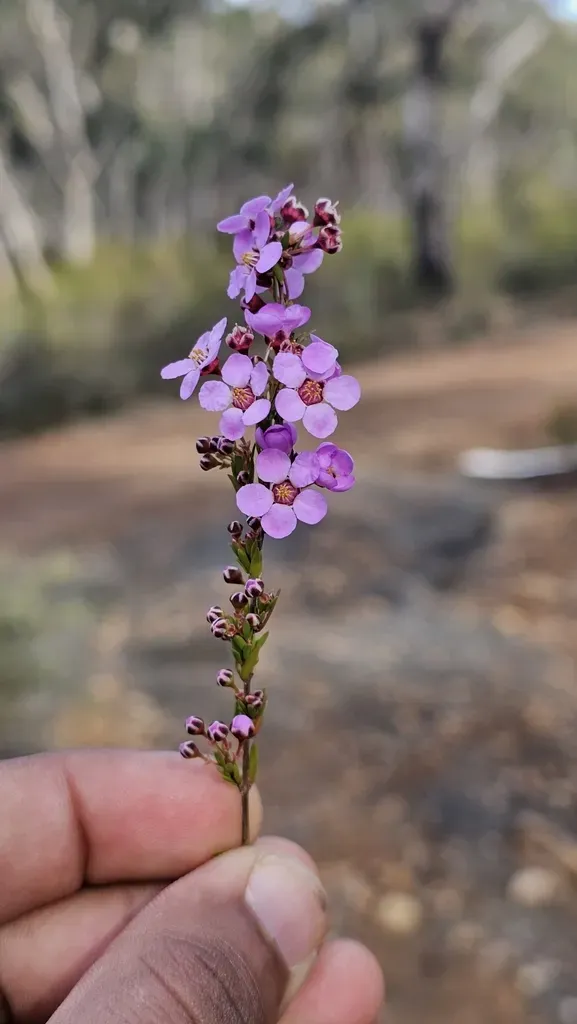 Rosy Heath-myrtle (Euryomyrtus Ramosissima) is a perennial shrub in the Myrtaceae family with easy care difficulty. It requires low watering and full sun or partial shade light in USDA hardiness zones 9-11. This plant is safe for cats and dogs.