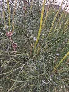 Euryops speciosissimus is a flowering shrub endemic to the fynbos region of South Africa, known for its large yellow daisy-like flowers and evergreen foliage.