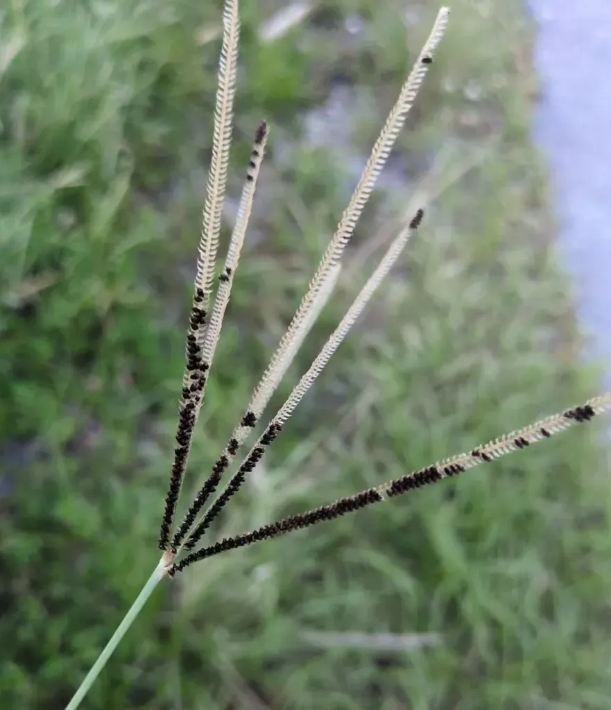 Eustachys petraea is a native perennial bunchgrass known for its finger-like seed heads and bluish foliage, commonly found in sandy coastal habitats.