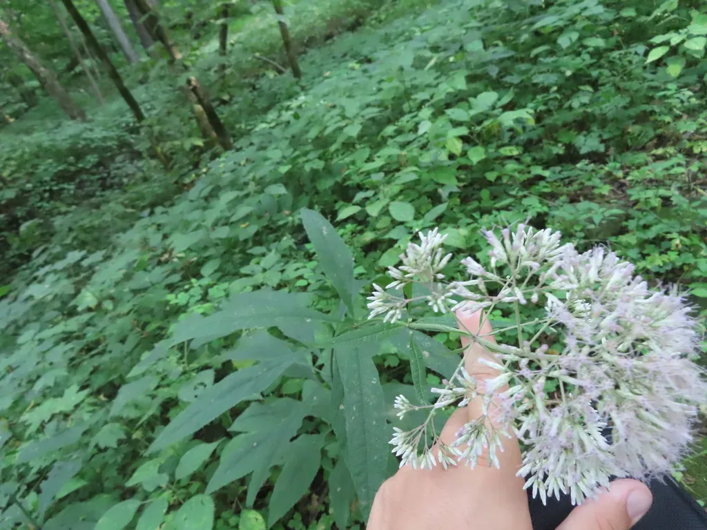 Eutrochium purpureum is a tall, herbaceous perennial native to eastern North America, known for its whorled leaves and large, domed clusters of pale pink to purple flowers.