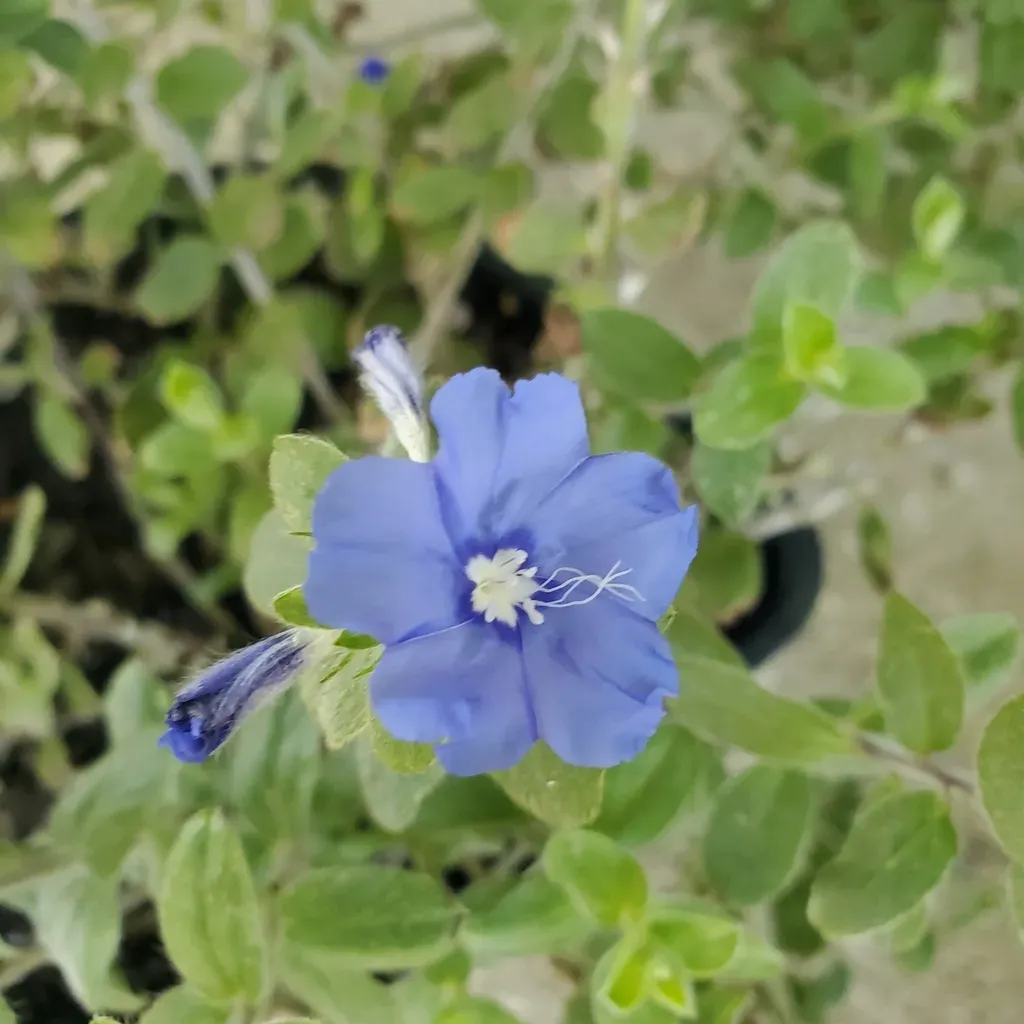 Evolvulus alsinoides is a tropical, herbaceous perennial plant known for its showy blue flowers and thin, prostrate to erect stems.