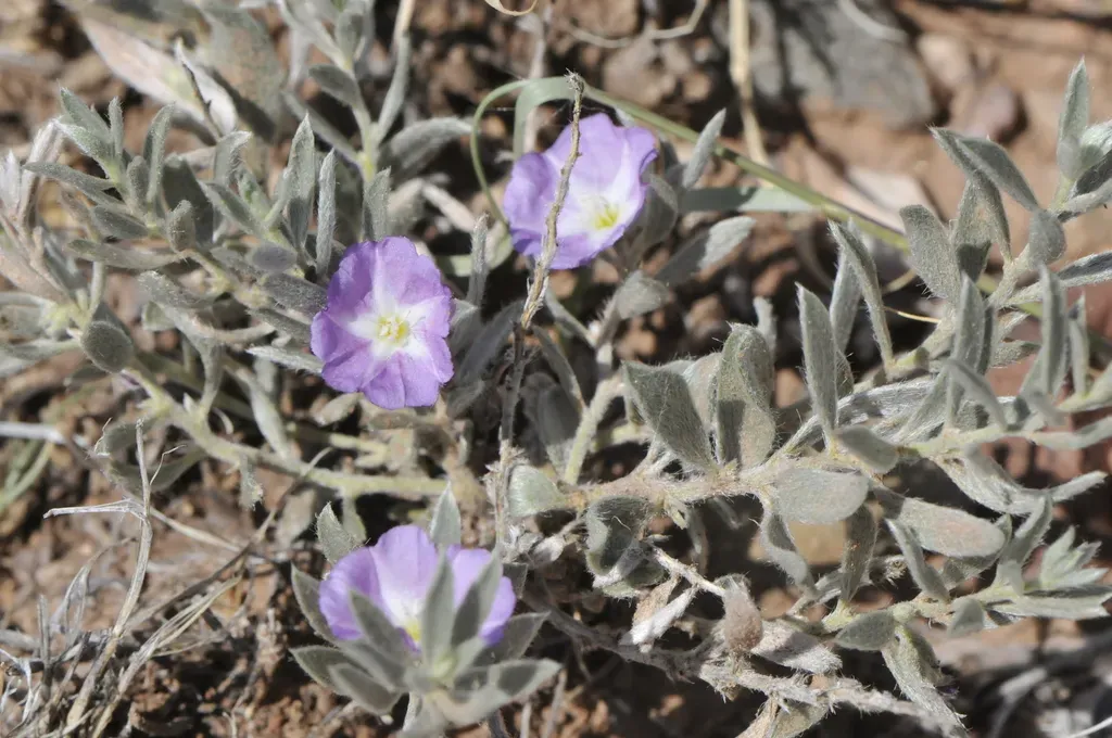 Evolvulus nuttallianus is a perennial herbaceous plant known as shaggy dwarf morning-glory, characterized by its small size and spreading habit.