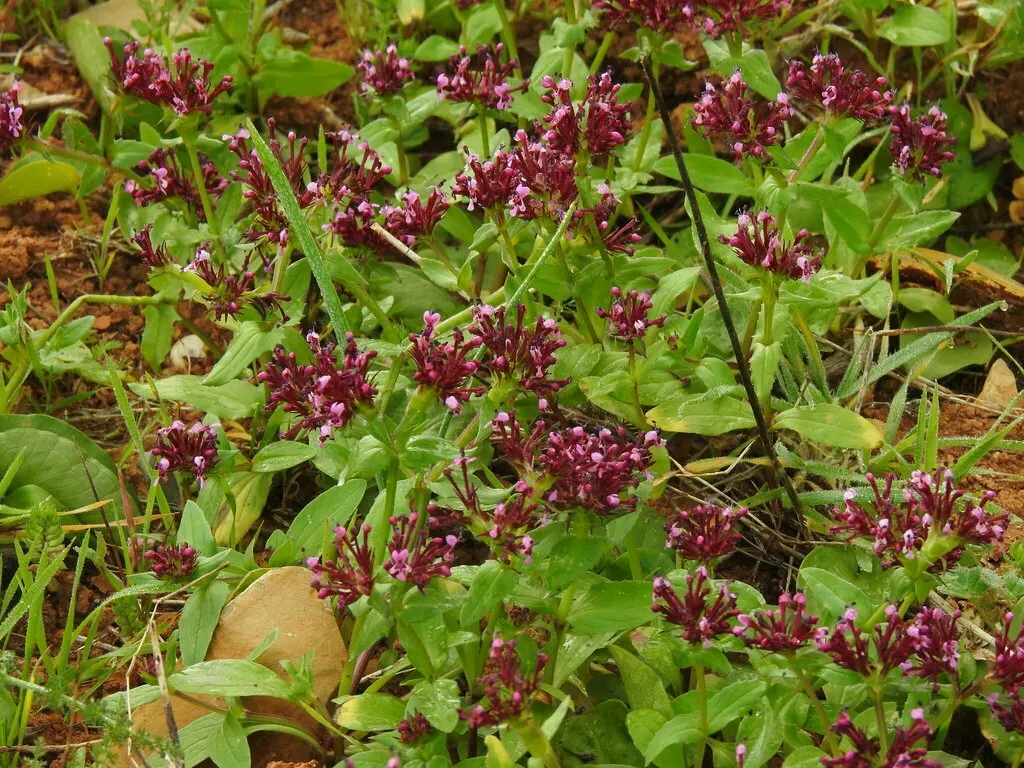 Fedia cornucopiae is a low-growing annual herb with fleshy, toothed leaves and clusters of fragrant pinkish-white flowers.