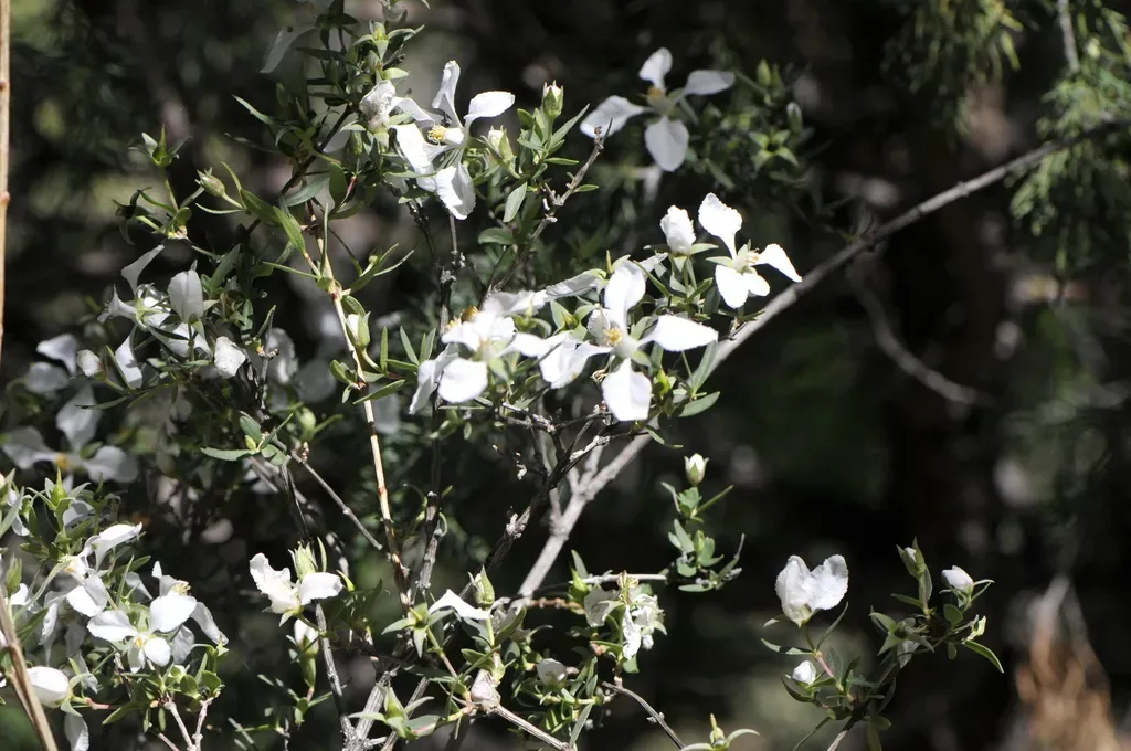 Fendlera rupicola is a deciduous to semi-evergreen shrub with showy white or pink-tinged flowers, native to the southwestern United States.