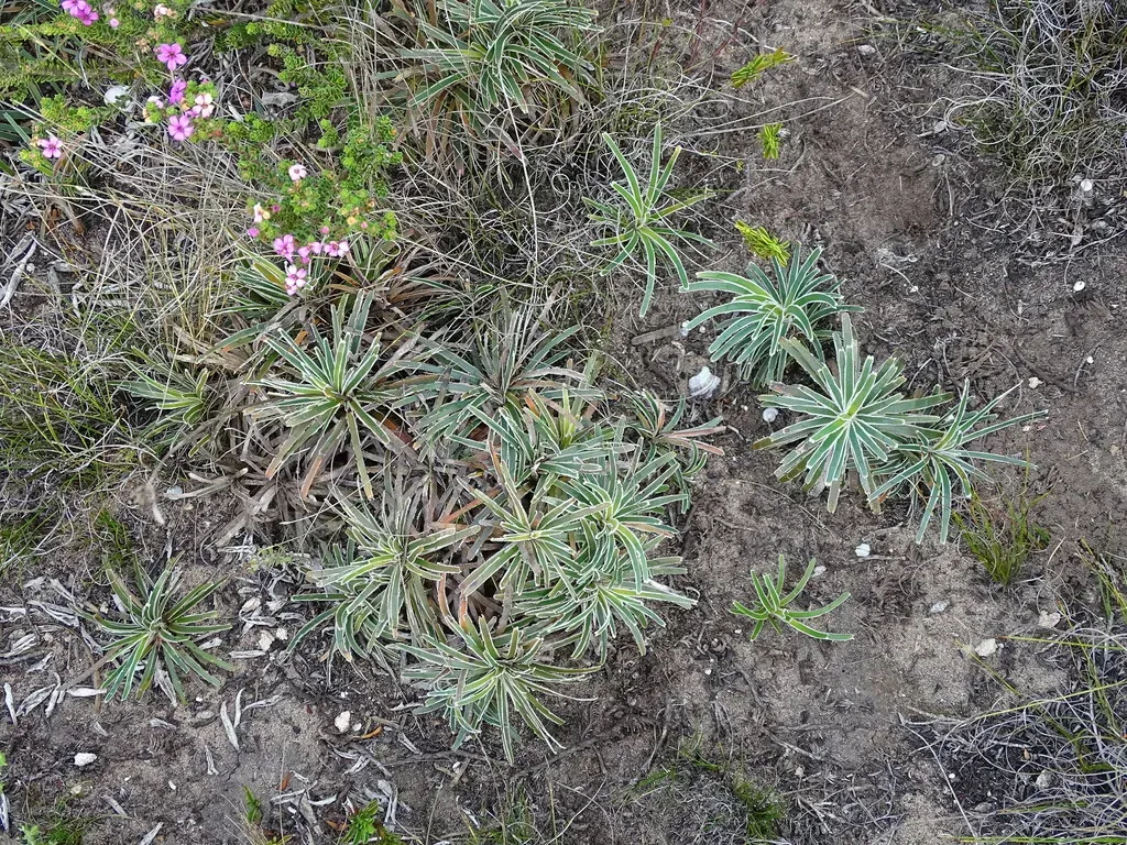 Frosty Sedge (Ficinia Truncata) is a perennial grass in the Cyperaceae family with easy care difficulty. It requires moderate watering and full sun or partial shade light in USDA hardiness zones 8-11. This plant is safe for cats and dogs.