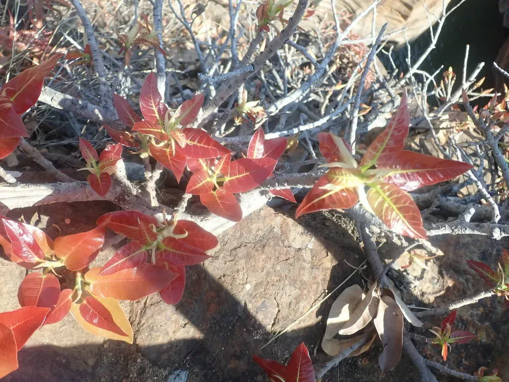 Ficus ingens is a semideciduous shrub or tree with a rounded, spreading crown, growing up to 13-15 meters tall.