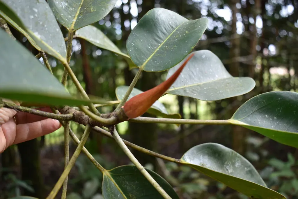 Ficus watkinsiana is a large hemiepiphytic strangler fig native to Australian rainforests, known for its epiphytic growth habit and large buttressed stems.