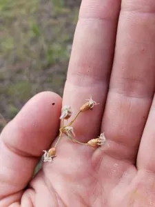 Fimbristylis puberula is a species of sedge native to North America, characterized by stiffly erect, linear leaves with inrolled margins and an open, umbrella-like inflorescence.