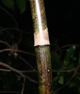 Flagellaria indica is a strong, semi-woody climbing plant known for its long cane-like stems and ability to grow up to 20 meters.
