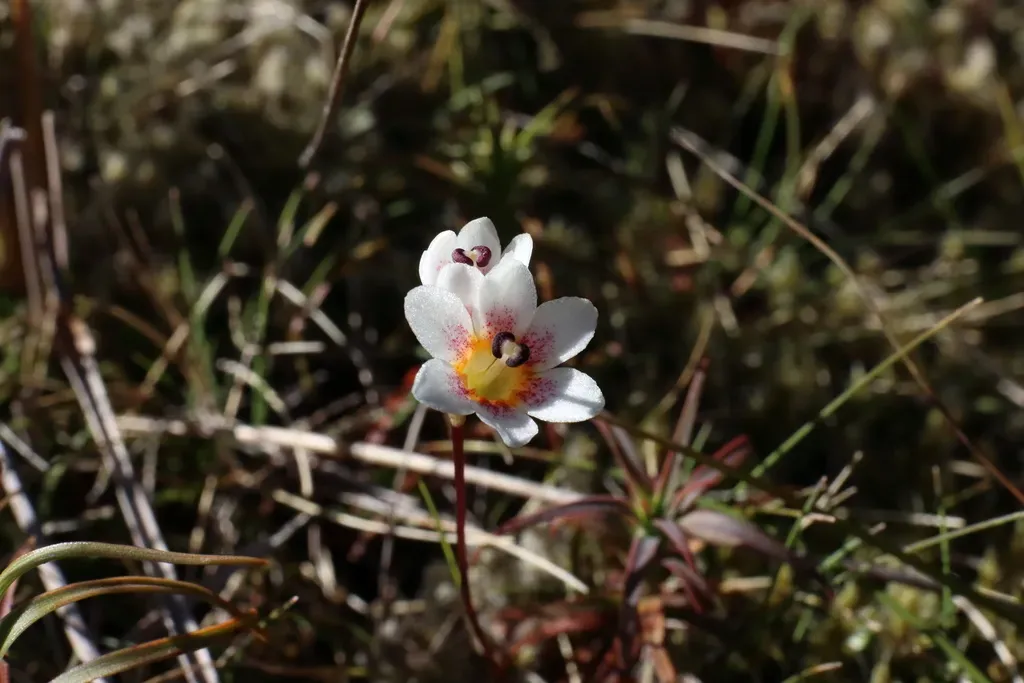 Forstera tenella is a small flowering plant endemic to New Zealand, characterized by its rosette of green leaves and white flowers.