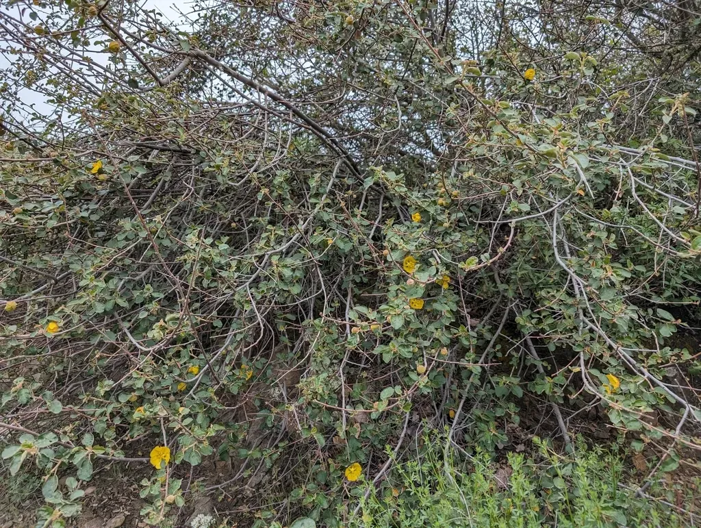 Fremontodendron californicum is a large evergreen shrub or small tree known for its vibrant yellow flowers and soft, flannel-like leaves.