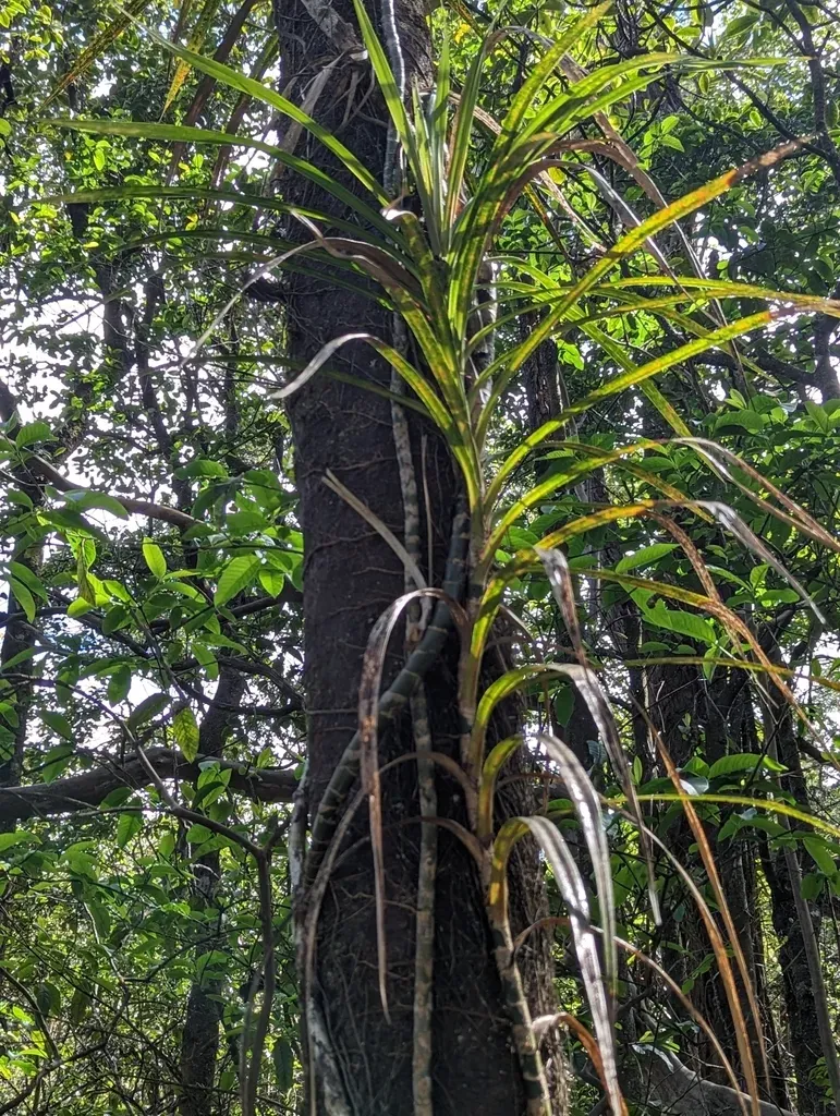 Freycinetia arborea is a vigorous, evergreen woody climbing plant native to Hawaii, known for its sprawling liana habit and ability to reach into forest canopies.