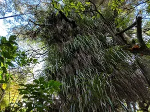 Kiekie (Freycinetia Banksii) is a perennial climber in the Pandanaceae family with moderate care difficulty. It requires moderate watering and partial shade or filtered_light light in USDA hardiness zones 9-11. This plant is safe for cats and dogs.