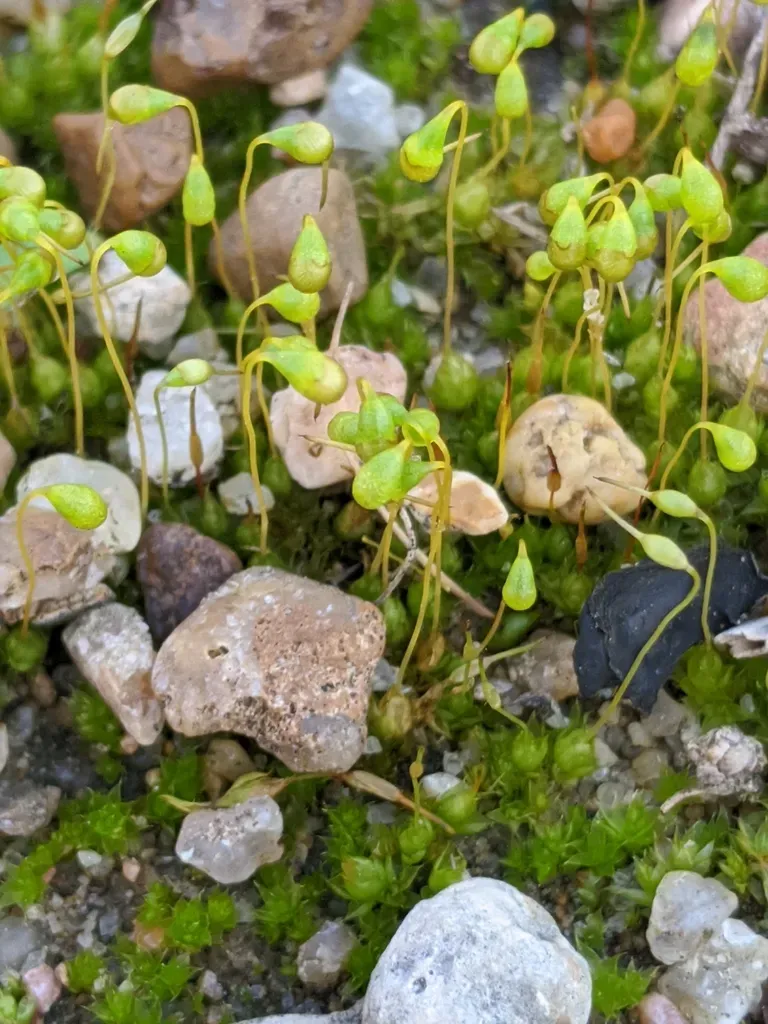 Funaria hygrometrica is a widespread, small, bright-green moss often found in moist, disturbed soils and recently burned areas.