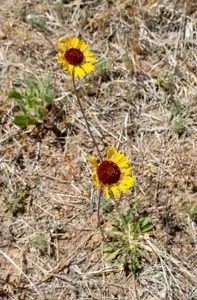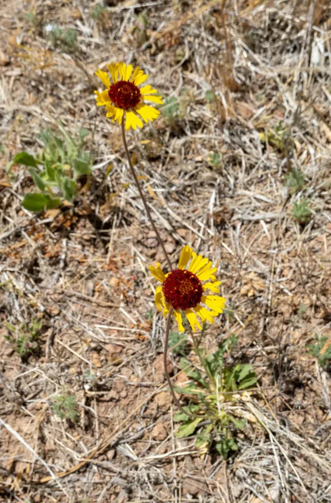 Gaillardia pinnatifida is a perennial flowering plant known for its striking red and yellow flowers and slender stalks.