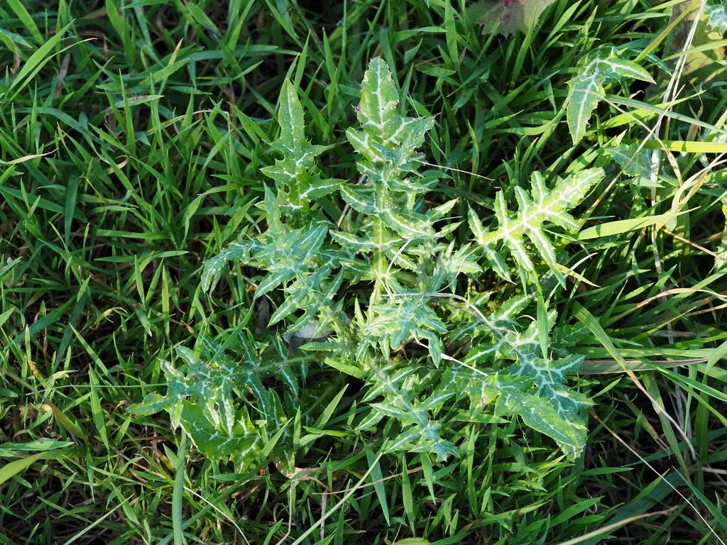 Galactites tomentosus is a striking perennial thistle native to the Mediterranean, known for its spiny leaves and showy purple flower heads.