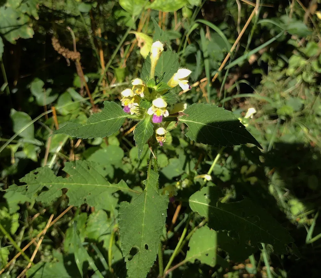 Galeopsis speciosa is an annual herbaceous plant growing up to 1 meter tall, with large, showy flowers appearing from July to September. It is hermaphroditic and belongs to the Lamiaceae family.