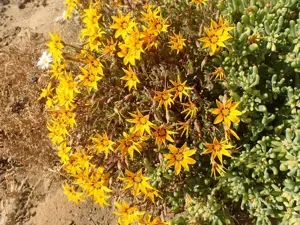Yellow Gazania (Gazania Lichtensteinii) is a perennial groundcover in the Asteraceae family with easy care difficulty. It requires drought-tolerant watering and full sun light in USDA hardiness zones 9-11. This plant is safe for cats and dogs.
