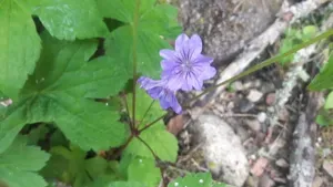 Geranium nodosum is a rhizomatous geophyte with upright stems and distinctive three-lobed leaves, typically growing up to 30 cm tall.
