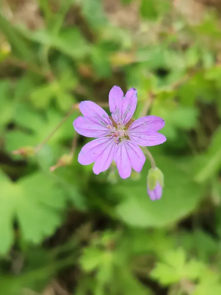 A perennial herbaceous plant native to Europe, known for its rounded, lobed leaves and small, purple flowers.