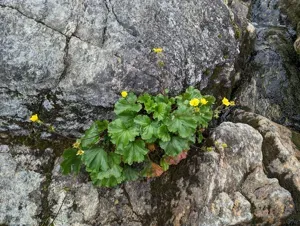 Geum peckii is a rare herbaceous perennial plant known for its yellow flowers and compact, ground-hugging hairy leaves.