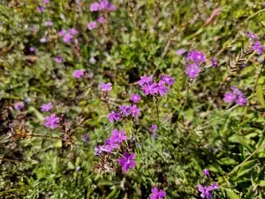 Glandularia aristigera is a perennial, trailing herb native to South America, widely cultivated as an ornamental plant.