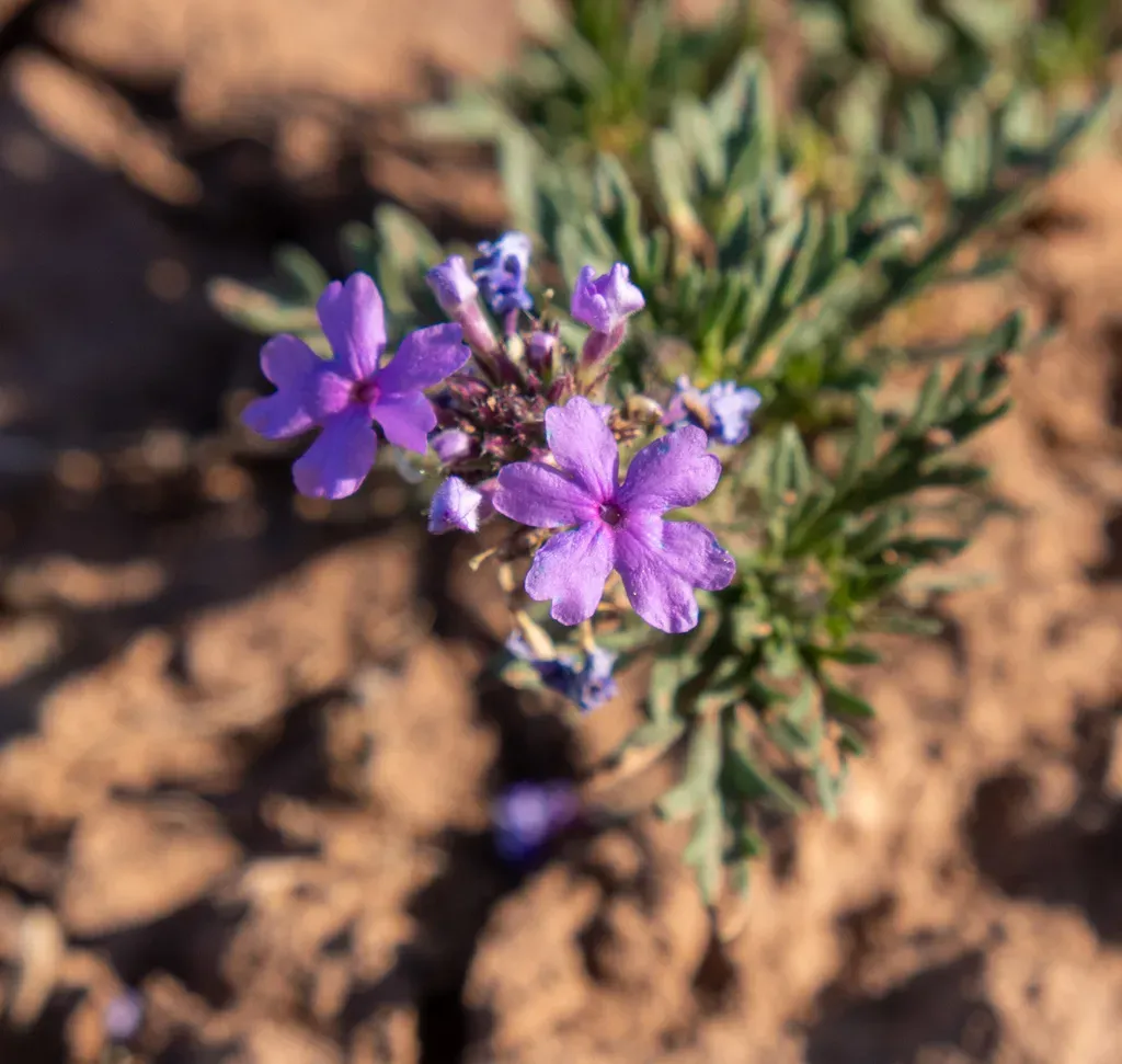 Glandularia wrightii is a perennial herb native to the southwestern United States and northern Mexico, known for its pink to purple flowers and semi-desert habitat preference.