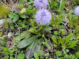 Globe Daisy (Globularia Nudicaulis) is a perennial subshrub in the Plantaginaceae family with easy care difficulty. It requires low watering and full sun or partial shade light in USDA hardiness zones 5-8. This plant is safe for cats and dogs.